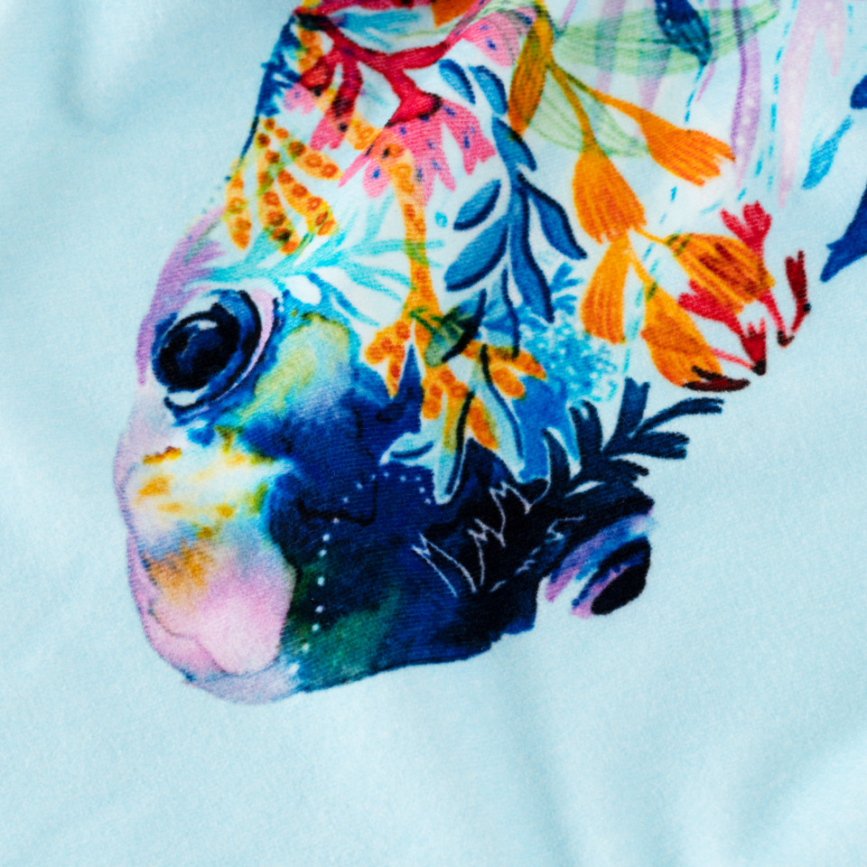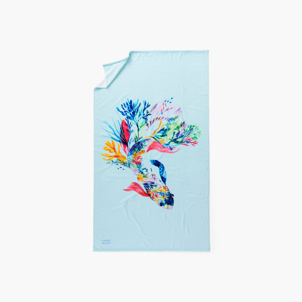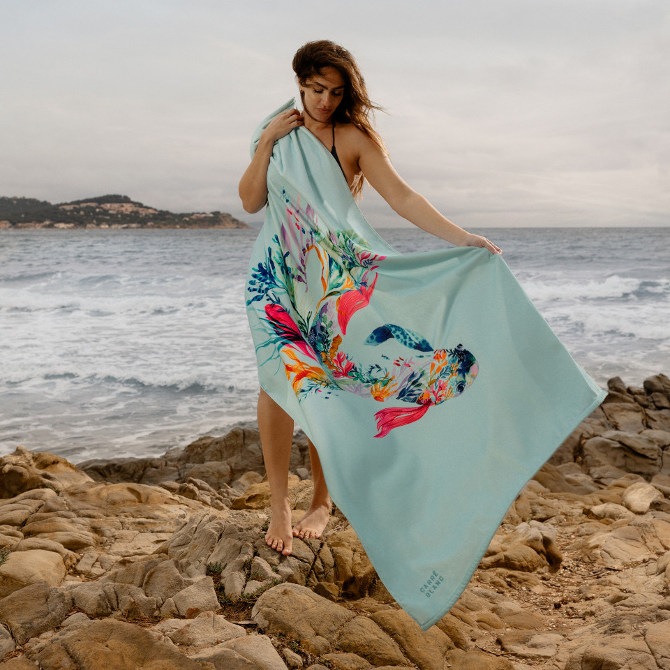 Demi lune kolekcija paryškina jūrinį motyvą akvarelės atspalviais. Raminanti mėlyna spalva, įkvėpta pajūrio. Paplūdimio rankšluostis pagamintas iš 100% Egipto šukuotinės medvilnės. Rankšluostis turi medvilninę kilpinę pusę, todėl gali būti naudojamas prie baseino, ar tiesiog paplūdimyje ant smėlio.